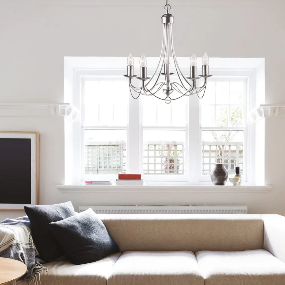 lysekrone i Maypole-metal med satinsølv finish