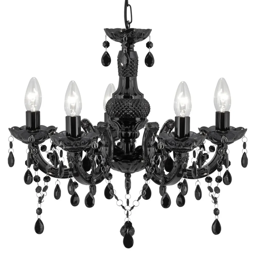 Vær den første til at anmelde “Searchlight Lysekroner|Pendellamper>Marie Therese lysekrone, sort, 5 lyskilder” Annuller svar