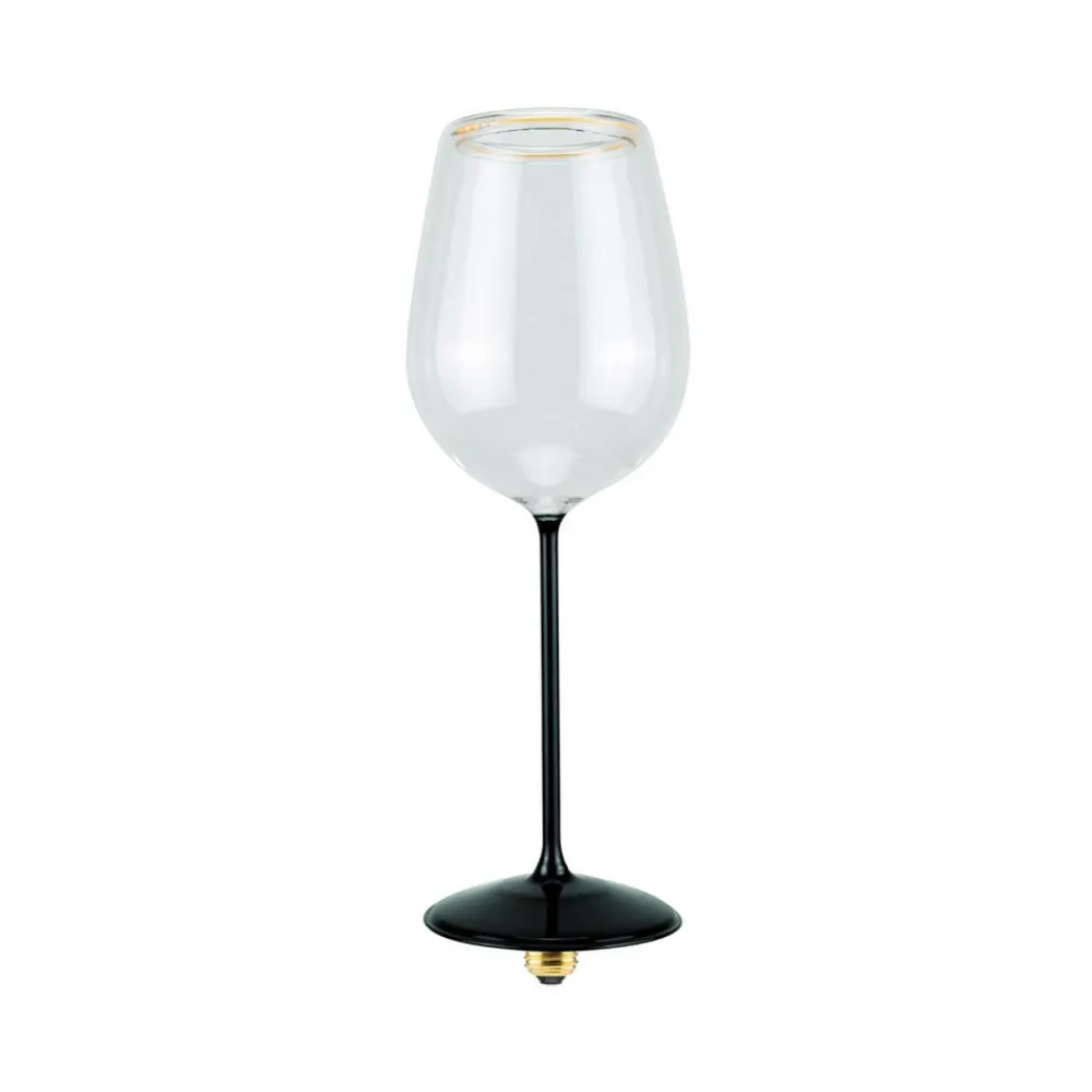 E27 LED-pære Floating Red Wine black, 5 W – klar glaspære med sort stilk Denne E27 LED-pære fra Floating-serien har en klar glaspære med en sort stilk, hvis form er modelleret efter et rødvinsglas. Den patenterede soft filament-teknologi og attraktive lysrefleksioner giver pæren ekstra dekorativ værdi. Ideel til åbne armaturer uden skærm eller fatningsarmaturer – eksternt dæmpbar (bagkant) – ekstra varmhvidt lys – god farvegengivelse (CRI 90) – håndlavet glaspære