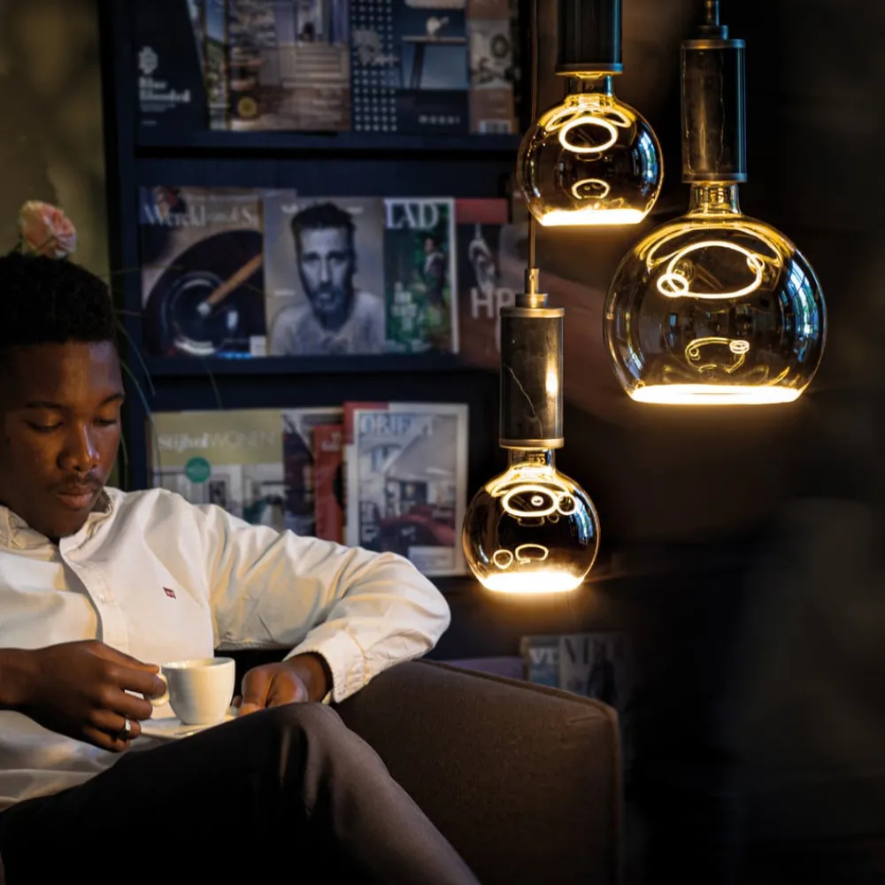 Dæmpbar LED Floating Globe Lamp G200, E27, 5W, klarDen flydende LED Globe Lamp er alene på grund af sin betydelige størrelse et smukt blikfang i boligen. Det dekorative look forstærkes af åbningen øverst på pæren. Den er derfor særligt velegnet til brug i åbent udformede fatninger eller armaturer uden skærm. Det varme lys skaber en behagelig atmosfære i boligområdet. Desuden er det muligt at regulere LED-lampernes lysstyrke med en ekstern fasedæmper.- Varm lysfarve med 2.200 K- Dæmpbar med ELTAKO, Jung, GIRA- Meget god farvegengivelse Ra 90- Præmieret med Plus X Award 2022/2023 i kategorierne Innovation, Høj kvalitet og Design.