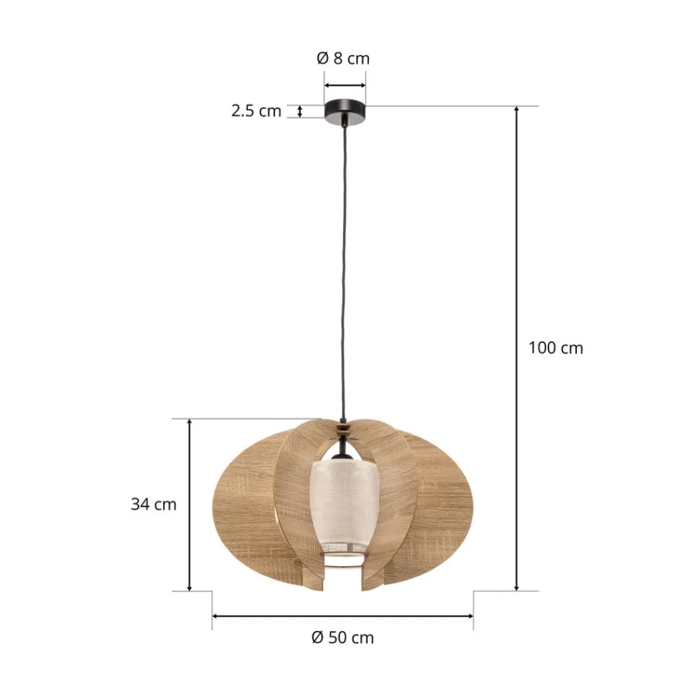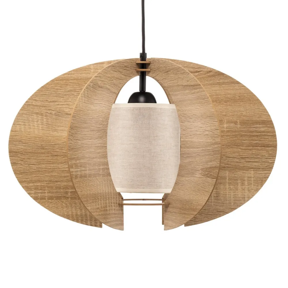 Hængelampen Modern C M forener moderne design med naturlige materialer og skaber dermed en harmonisk atmosfære i ethvert rum. Kombinationen af HDF, tekstil og pulverlakeret stål giver lampen en tidløs elegance, der kan integreres problemfrit i forskellige indretningsstilarter. Trælamellerne i farverne eg, ecru og sort sætter stilfulde accenter og skaber et varmt, indbydende lysspil.