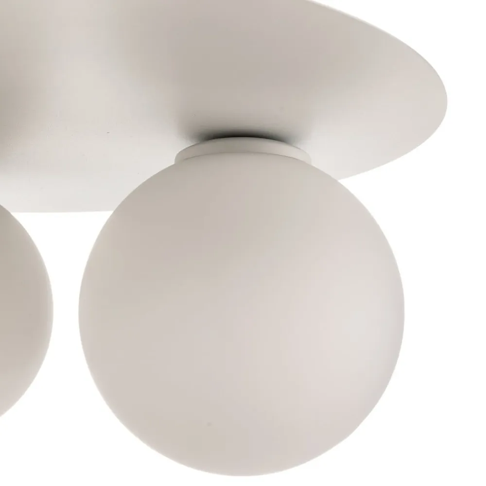 Loftlampen Firn, rund og med 3 lyskilder, forener moderne design med høj kvalitet. Fremstillet af robust stål og elegant glas passer den perfekt ind i forskellige boligområder som stuen, køkkenet, entreen og spisestuen. Den hvide, opale farve sikrer en jævn lysfordeling og skaber en behagelig atmosfære.