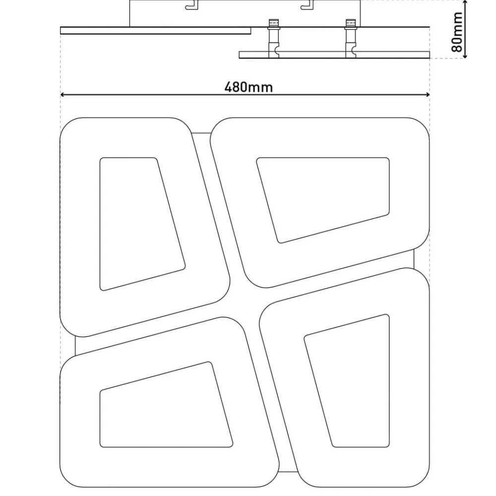 Hvid Simes LED-loftlampe med CCT-funktion – styres med fjernbetjening Simes LED-loftlampe i hvid er en funktionel og visuelt moderne lyskilde til opholdsrummet. Fire kantede elementer i forskellige retninger er monteret under et firkantet loftsarmatur i metal. De rummer hver især en LED-lyskilde med en diffuser på undersiden, og lyset spotlightes også opad, hvilket skaber en behagelig grundbelysning. Lysfarven kan justeres fra varmhvid til dagslys afhængigt af situationen, og lysstyrken kan også justeres. Når lyset tændes igen, genaktiveres den sidst valgte indstilling (hukommelsesfunktion). Der findes en natlampe-funktion til diskret orienteringsbelysning. Alle indstillinger kan styres med den medfølgende radiofjernbetjening (frekvens: 2,4 GHz).