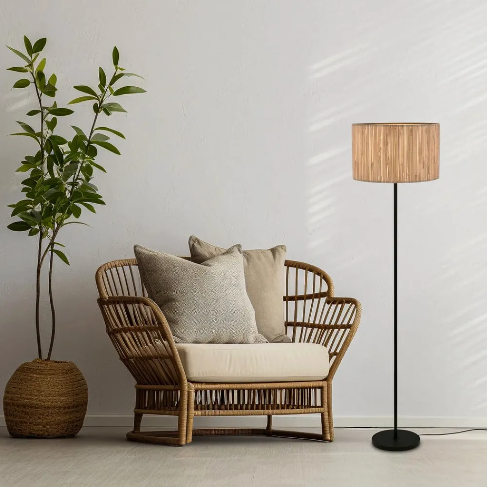 Slama gulvlampe, naturfarve, metal, søgræs, E27