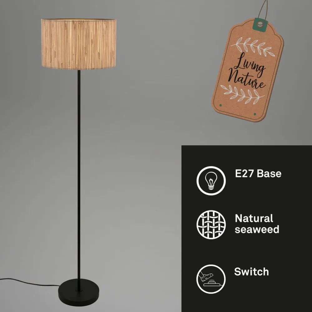 Slama gulvlampe, naturfarve, metal, søgræs, E27^Briloner Best
