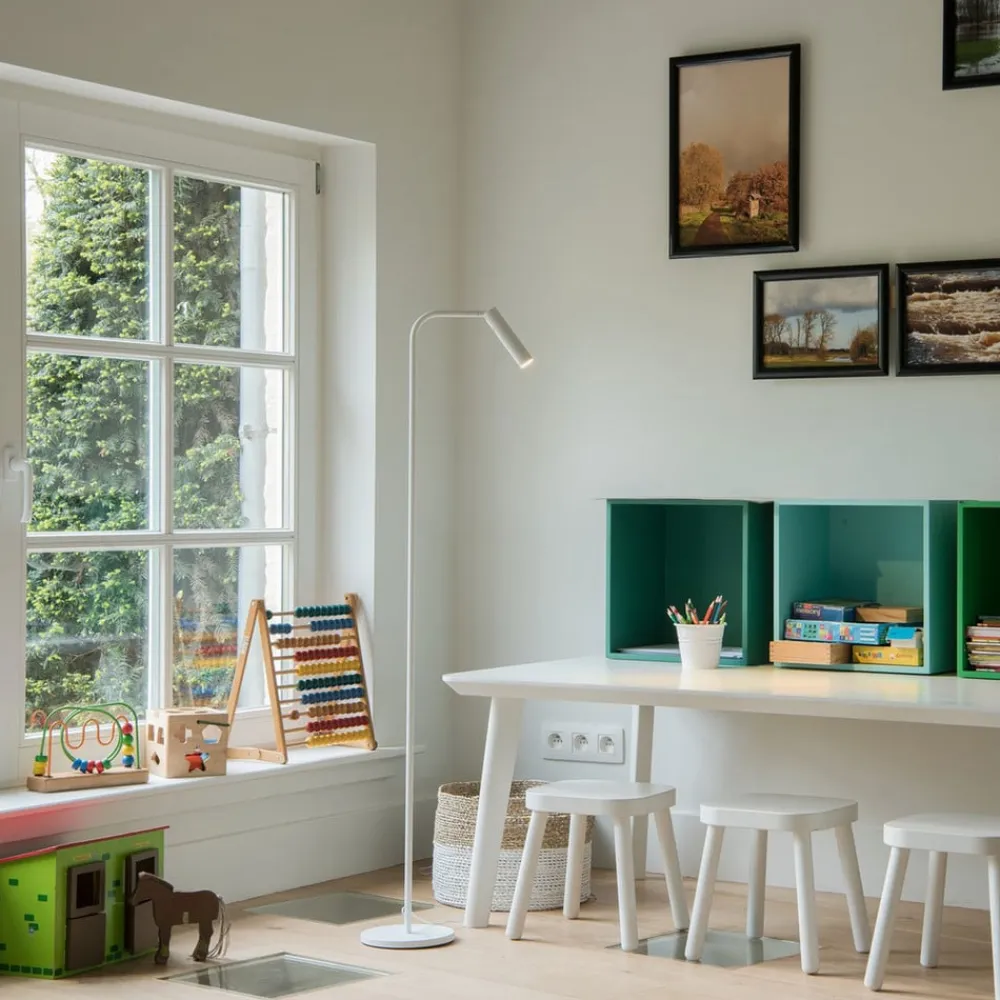 Karpo LED-gulvlampe , der kan integreres overalt i det moderne opholdsstue, fremstår meget dæmpet i form og neutral i farven. Dit lampehoved er justerbart: Det kan drejes 90 og drejes 330 grader. Strålens de installerede lysdioder er 40 grader, dens lys skinner i behagelig varm hvid og kan reguleres via den indbyggede touch-lysdæmper på lampehoved i tre faser. Den ideelle ekstra lysdispenser til f.eks. Opholdsområdet i stuen, hvor Karpo også udsender et vidunderligt læselampe takket være de forskellige justeringsmuligheder.