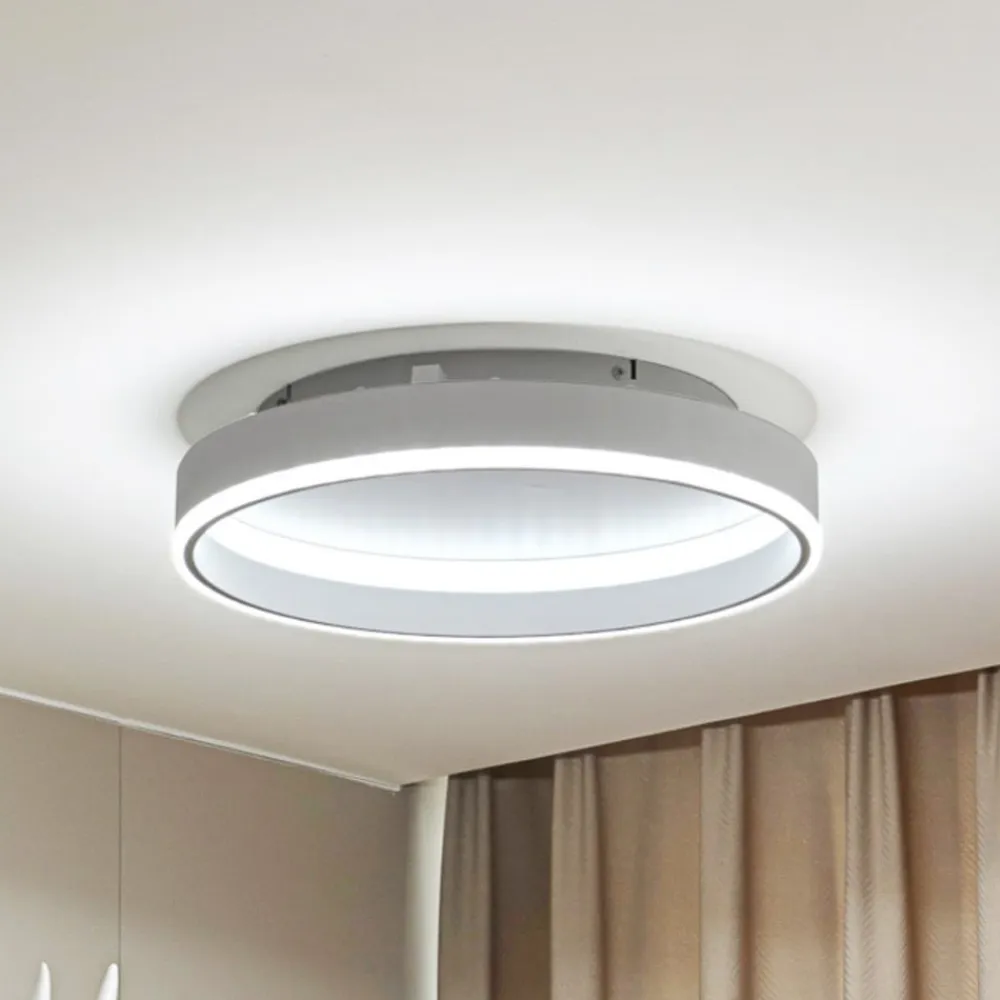 Intelligent LED-loftslampe Yasmen i en rund form Den smarte LED-loftslampe er en innovativ belysningsløsning, der kombinerer moderne design og intelligent teknologi. Armaturet er lavet af plast og passer perfekt ind i ethvert rum. Med sin kontrollerbare lysfarve (CCT) kan farvetemperaturen indstilles mellem 3.000 K og 6.500 K for at skabe en individuel atmosfære. Et særligt highlight ved den smarte LED-loftslampe er den trinløse dæmpningsfunktion. Du kan justere lysstyrken, så den passer til dine behov og skaber en hyggelig atmosfære eller sikrer optimal belysning. Lyset styres via den gratis Tuya-app, som er tilgængelig til både iOS og Android. Med appen kan du nemt styre belysningen fra din smartphone eller tablet.
