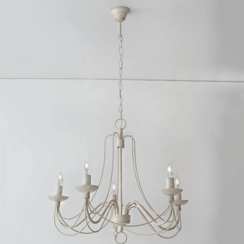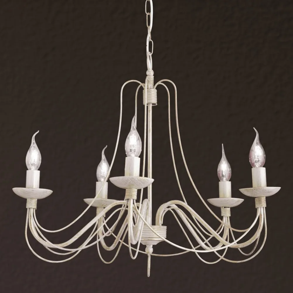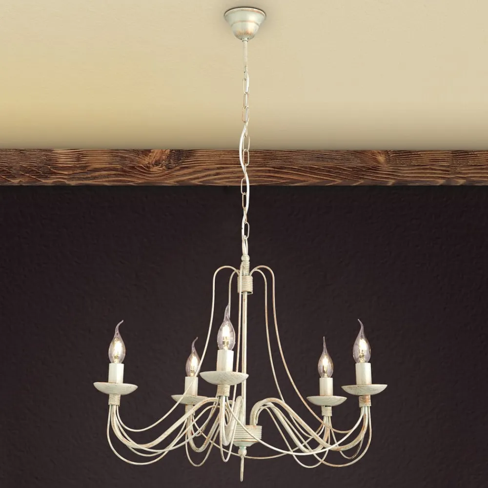 Elfenbensfarvet lysekrone Antonina – 5 lyskilder