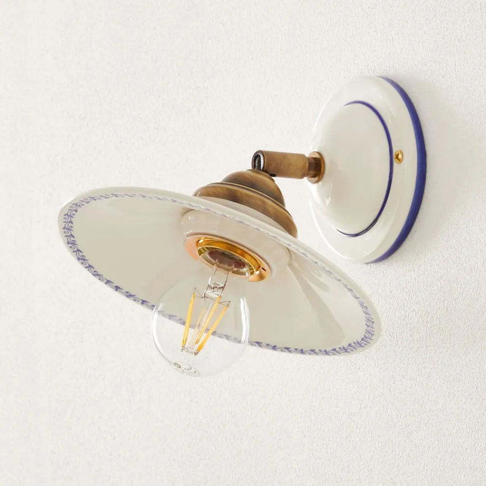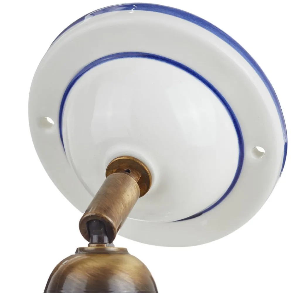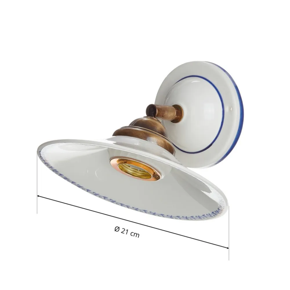 Stilfuld væglampe IL PUNTI med keramikskærmEn stilfuld væglampe med dekorativt designet keramikskærm, der kan integreres i næsten alle rum og giver god belysning. Den hvidglaserede keramikskærm er prydet med dekorativ blå dekor og svarer dermed til landhusstilen. Væglampens lys sendes direkte og uhindret ud i rummet.