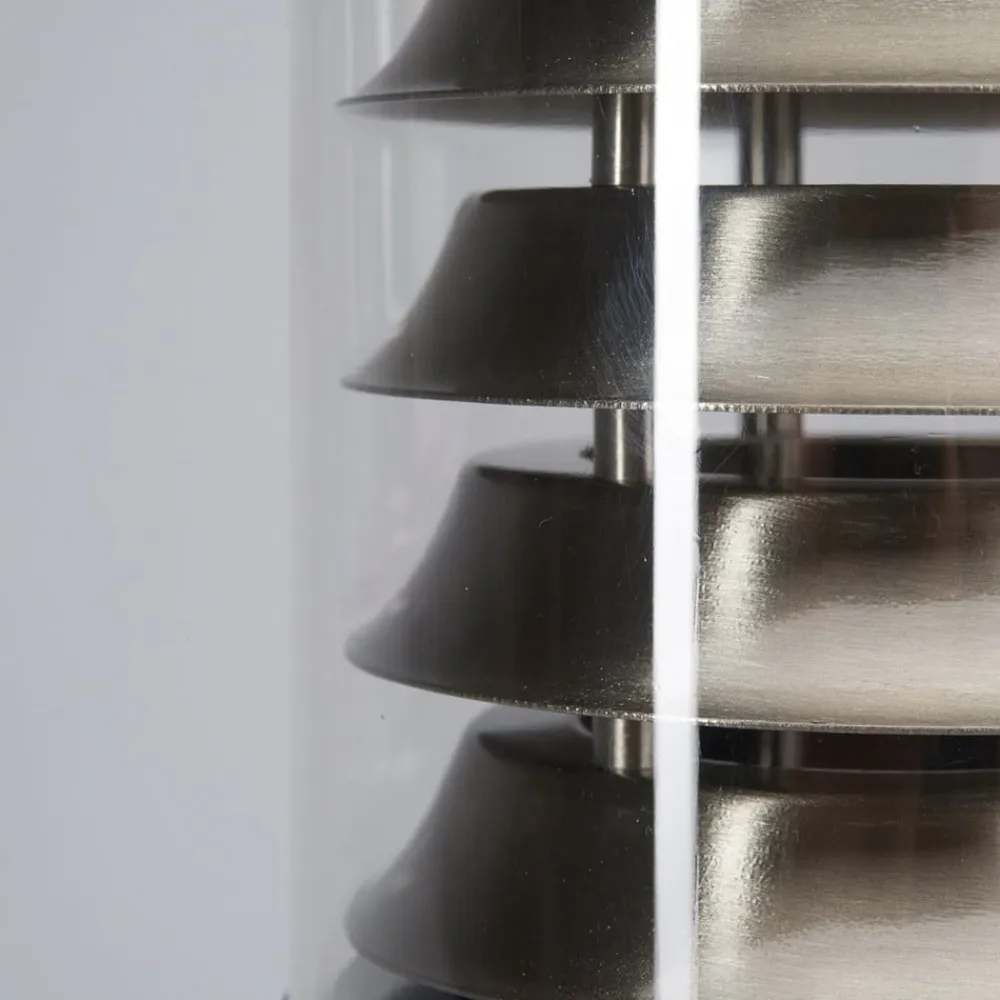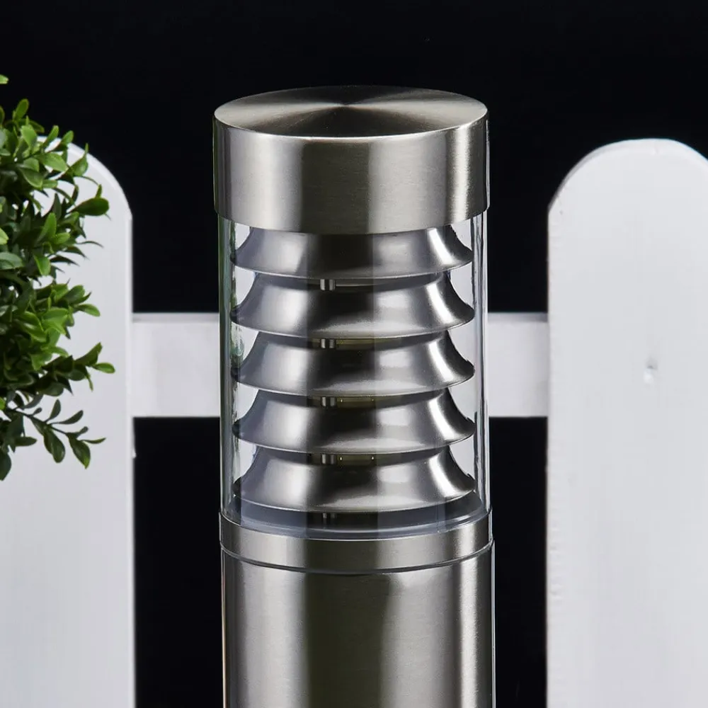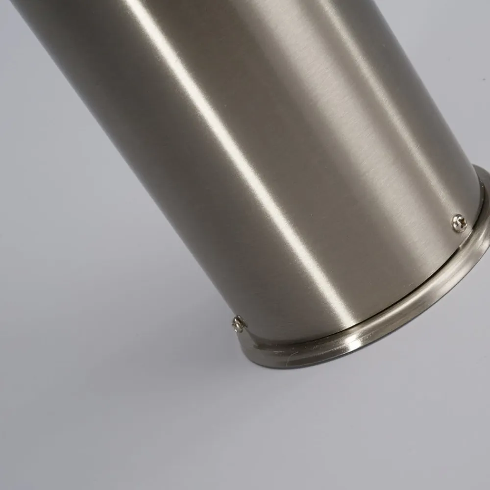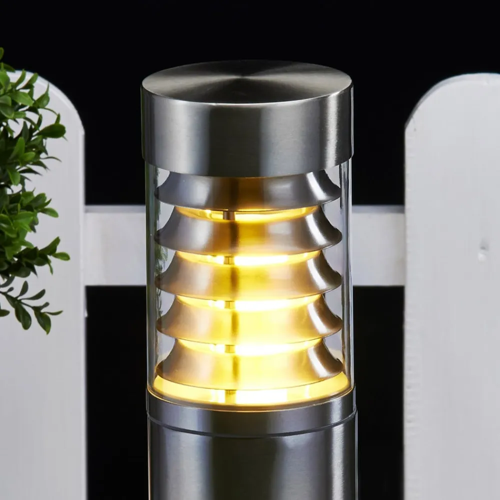 Den rørformede Enja sokkellampe har et moderne udtryk takket være den sølvfarvede overflade i rustfrit stål. I den øverste del findes lampen i polycarbonat. Der kan anvendes pærer med fatning E27 op til maks. 15 watt, og lamellerne under det klare polycarbonatelement reducerer blændingen fra lampen til et minimum, så det fremkomne lys opleves som meget behageligt. En dekorativ lyskilde til udendørs brug!