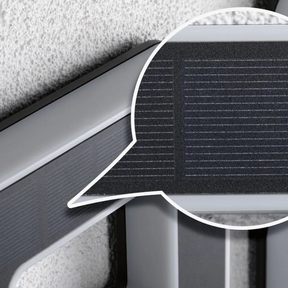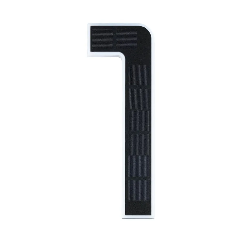 Udendørs solar-husnummer i sort med varmhvid belysning Solar-husnummeret er udstyret med et usynligt integreret solcellemodul, som oplader det integrerede, udskiftelige batteri i løbet af dagen, så det oplyste husnummer kan monteres på facaden, husmuren eller et andet sted helt uafhængigt af en strømtilslutning. Så snart det bliver mørkt, oplyses husnummeret indirekte af de integrerede, varmhvide LED’er. Lyset skinner sidelæns gennem nummerets satinerede ramme – Maks. belysningstid med fuldt batteri 8 timer – Batteriopladningstid 12 timer – Batteri 1 x AAA 1,5V (micro), medfølger