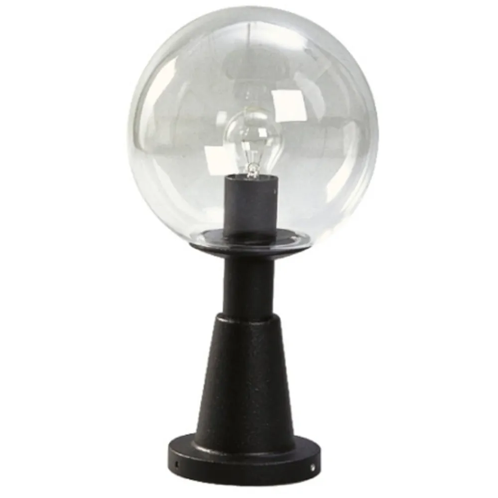Sokkellampe af høj kvalitet med krystalglaskugle Denne smukke sokkellampe af robust støbt aluminium med stor, sfærisk lampeskærm passer til mange ejendomme takket være sit tidløse design og giver tilstrækkeligt lys i nærheden af stier og veje. Udstyret med en kapslingsgrad på IP44 kan der bestilles en jordmonteringsbase i tilbehørssektionen til montering på et fundament eller et stykke jord. Højeste kvalitetsstandarder – Made in Germany Producenten af disse udendørslamper har en lang tradition – der er blevet produceret metalvarer af høj kvalitet siden 1864, og virksomheden gik ind i belysningsbranchen i 1950’erne. Producenten er kendetegnet ved konsekvent høj kvalitet – det gælder lige så meget i dag som i de tidlige dage – og for at garantere dette fremstilles lamperne udelukkende i Tyskland. Derudover bruges der kun udvalgte materialer, som kan modstå selv de hårdeste miljøpåvirkninger og dermed lover langvarig fornøjelse.