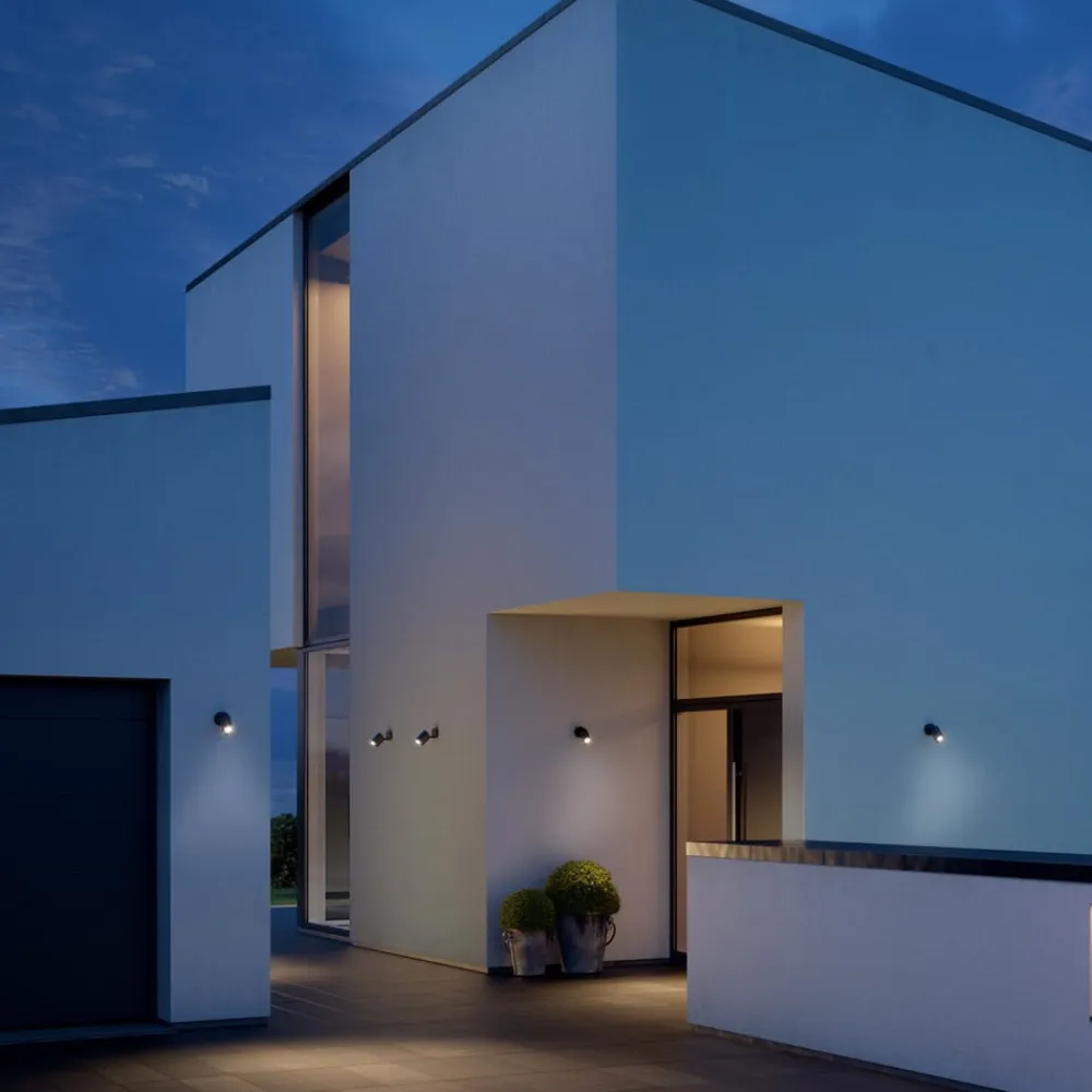 Facader i alle stilarter kan forbedres med denne klart strukturerede LED-udendørs spotlight: Spot One S kan drejes 180° horisontalt og 90° vertikalt, så lysets retning kan ændres meget individuelt. Flere steder kan der også etableres netværk via kabel. Spot One S leveres med en udskiftelig LED-lampe med GU10-fod.
