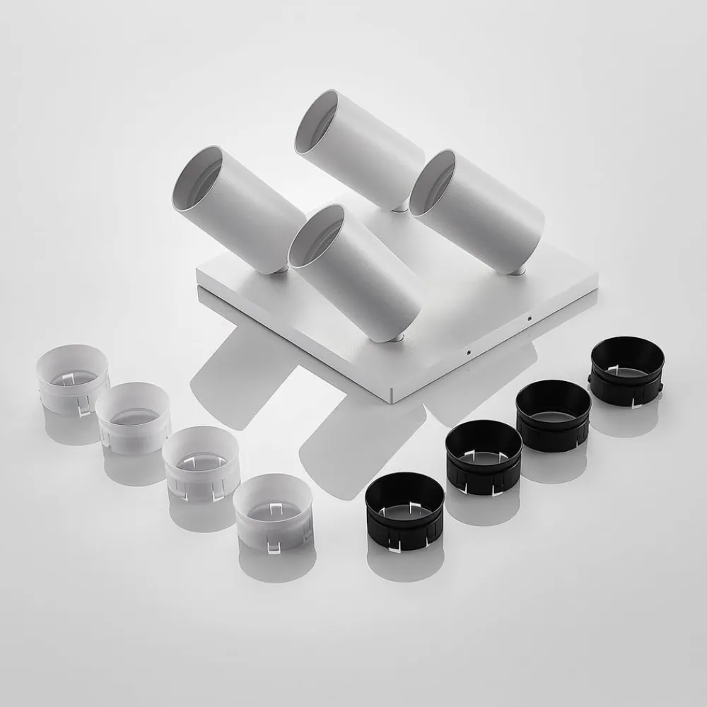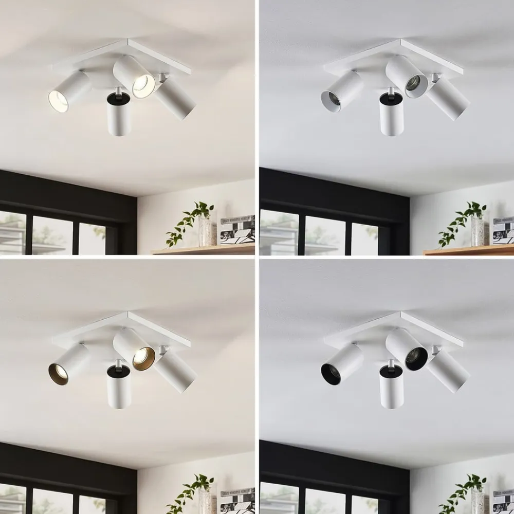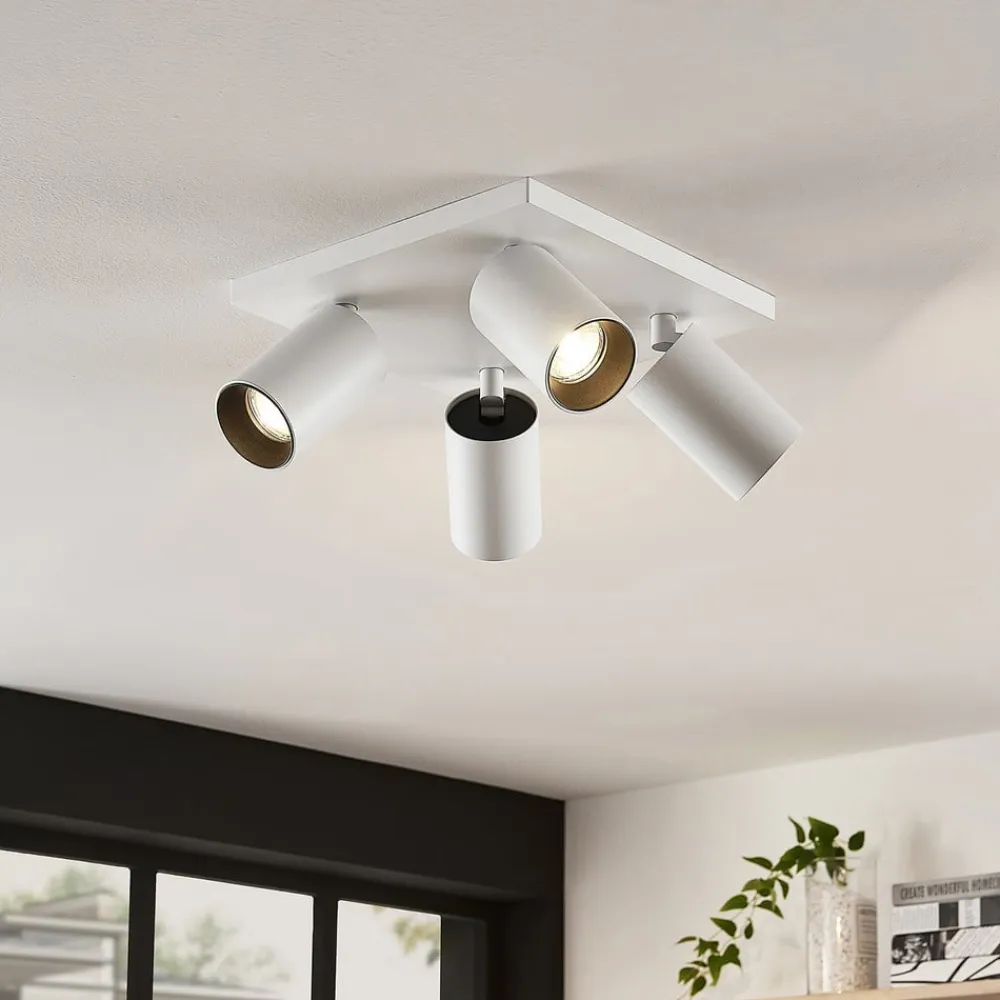 Med sine fire lyse spotlight sikrer den hvide lampe Brinja ideelle lysforhold – også i store rum. Spotlights kan drejes 350 grader hver for sig og vippes 90 grader, så alle fire hjørner af et rum kan belyses efter ønske.