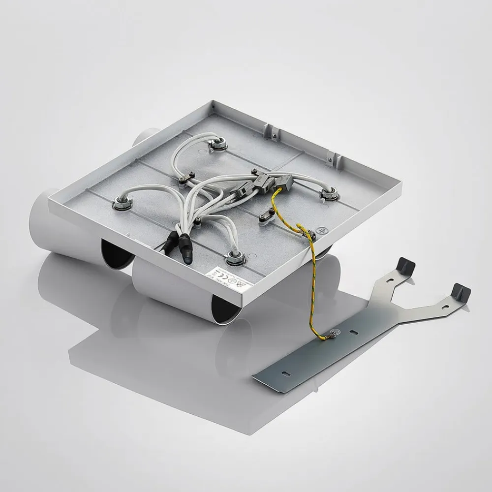 Lampen i aluminium passer perfekt ind i arbejds- eller opholdsrum takket være sit enkle udseende. De cylinderformede spotlight sidder på en firkantet holder, der holder dem fast og sikkert på plads.