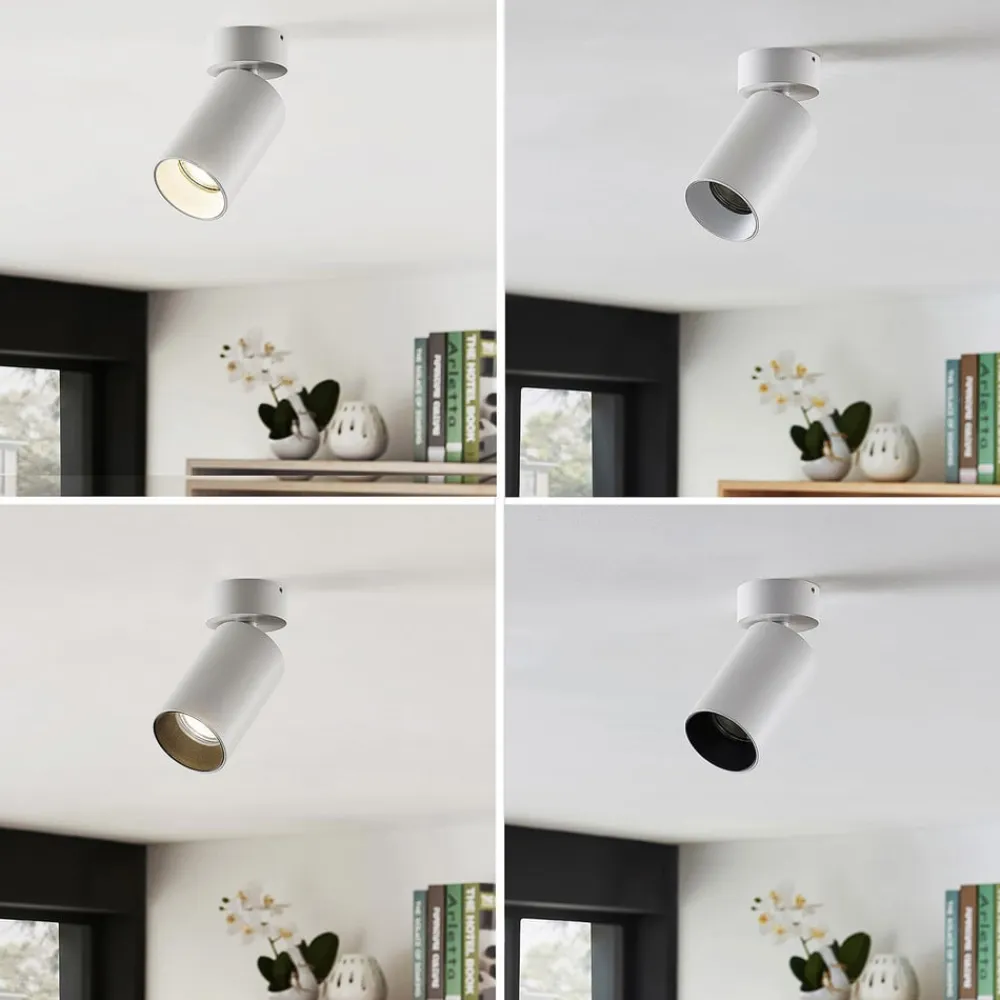 Hvid Brinja spotlight af aluminium i et praktisk sæt med 3 Helt i hvid imponerer Brinja spotlight med sit enkle, men elegante design og sætter ethvert rum i det rette lys. Uanset om det er i gangen, stuen eller arbejdsområdet – lampen tilpasser sig mange situationer. Armaturet har et cylindrisk aluminiumshoved, der kan vippes 90 grader og drejes 250 grader. Det betyder, at en bestemt del af rummet kan belyses efter behov. Spotlightets runde holder forbliver diskret takket være de slanke dimensioner.