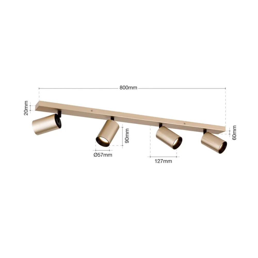 Spotlight Sean, 4 lyskilder, guldfarvet, metal, drejeligt monteret