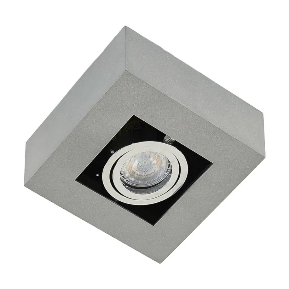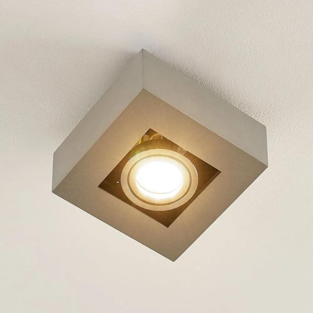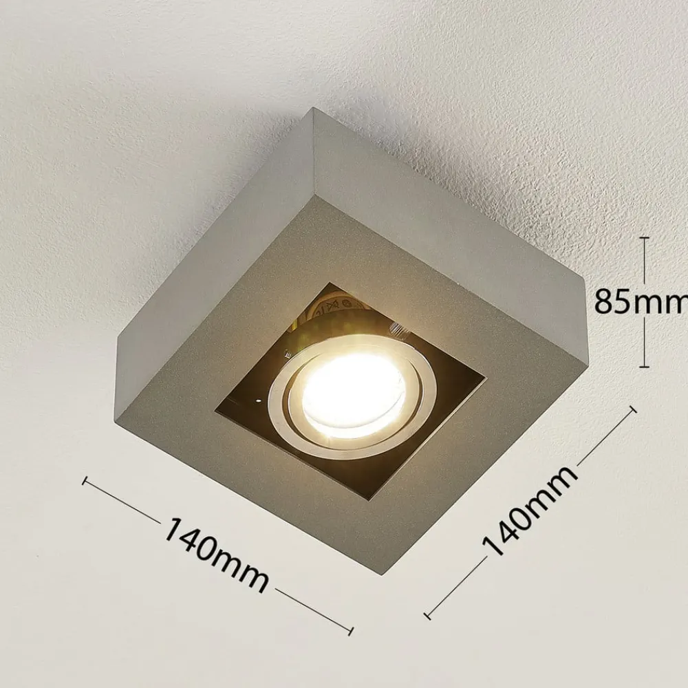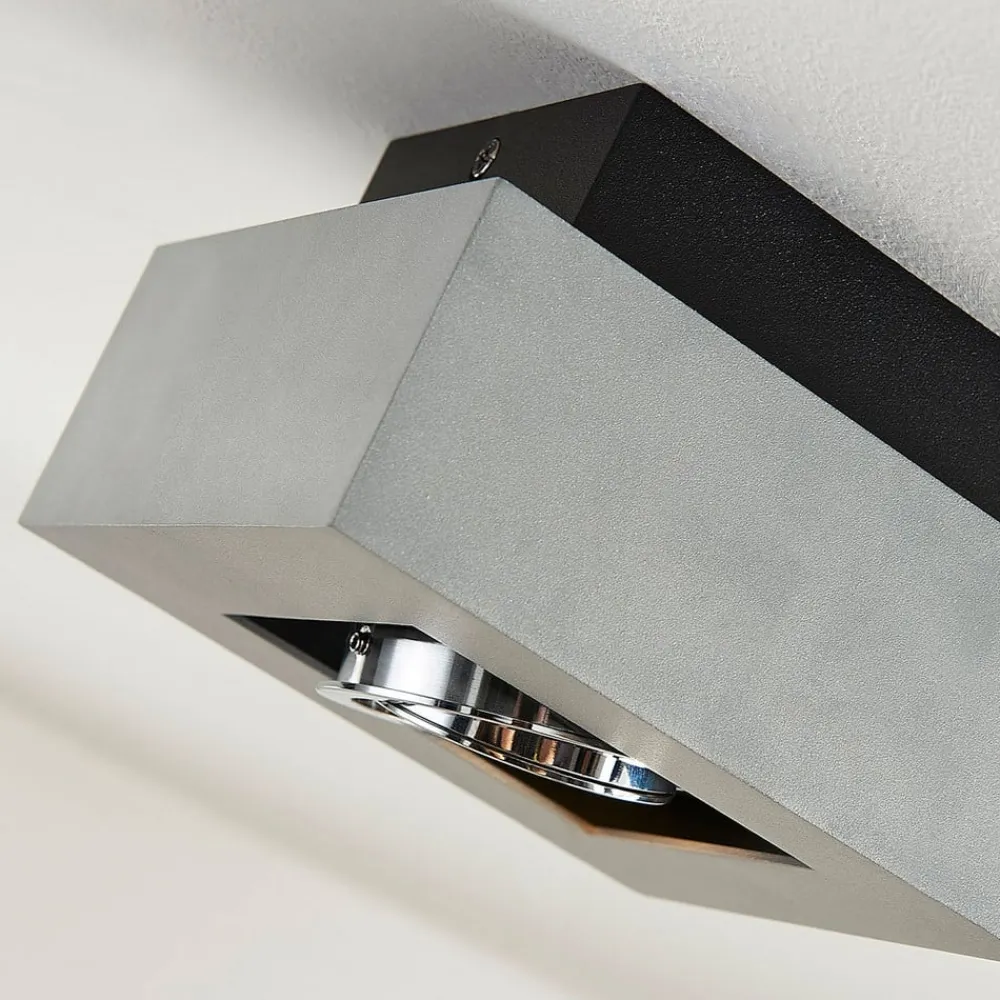 Vince firkantet loftlampe Med sin ret lille størrelse er denne loftlampe også velegnet til mindre rum, eller flere af loftlamperne kan installeres for at oplyse store områder. Vince-armaturet er lavet af aluminium med en sølvgrå finish. Takket være det moderne design og den neutrale farve passer den perfekt ind i mange forskellige boligstile. Loftlampen drives af en GU10 LED-lyskilde.