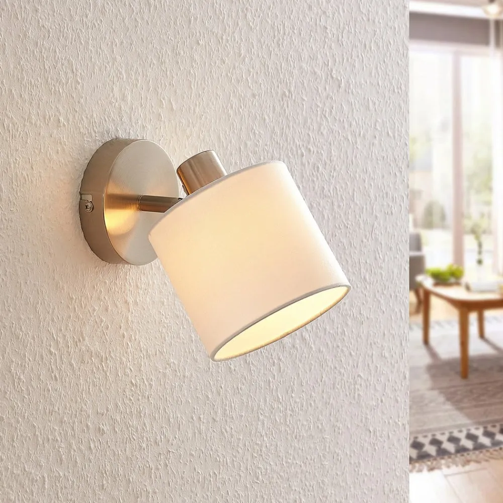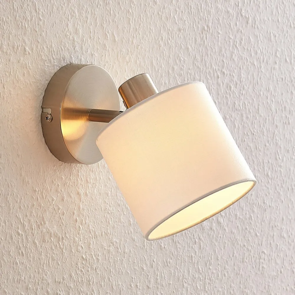 Lindby Stannis væglampe med tekstil, mat nikkel