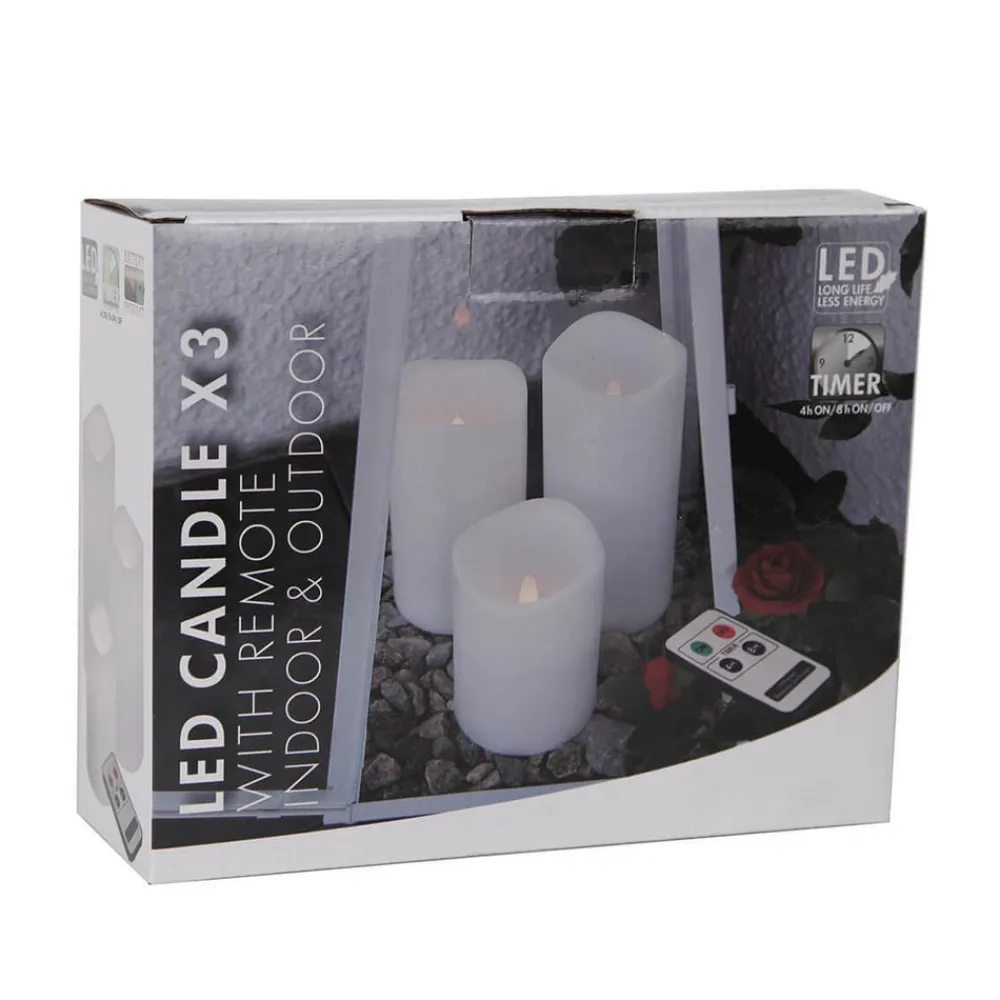 LED stearinlys i sæt med 3 til udendørs anvendelse