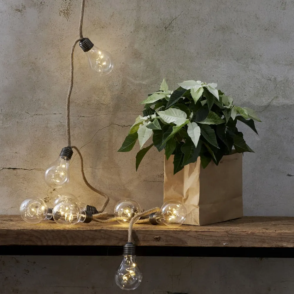 Jutta LED-lyskæde – ti klare pærer med LED’er og naturligt jutereb
