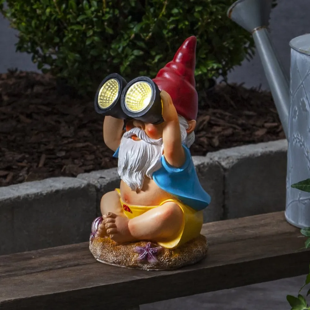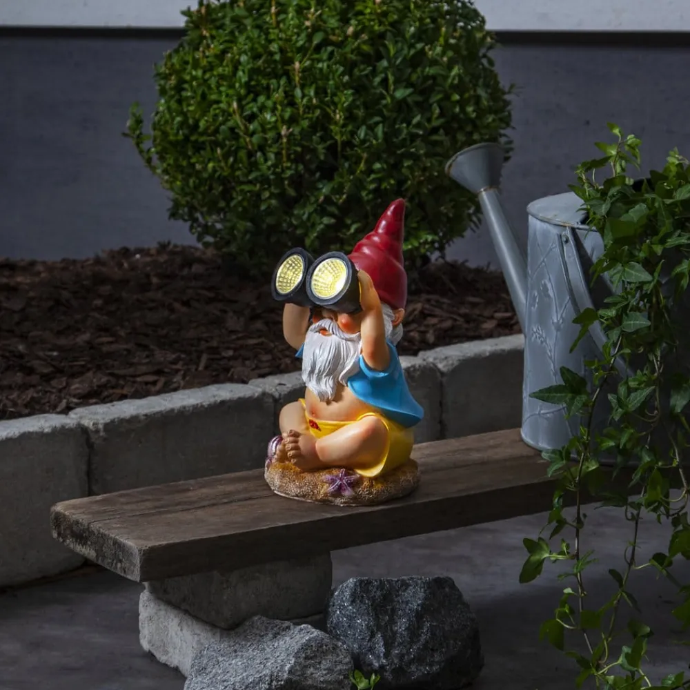 Gnomy LED-solcellelampe, farverig, plast, 22 cm, kikkert