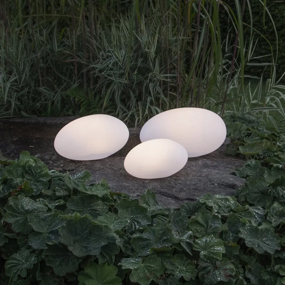 LED-solcellelampe Globy i stenform, længde 26,5 cm