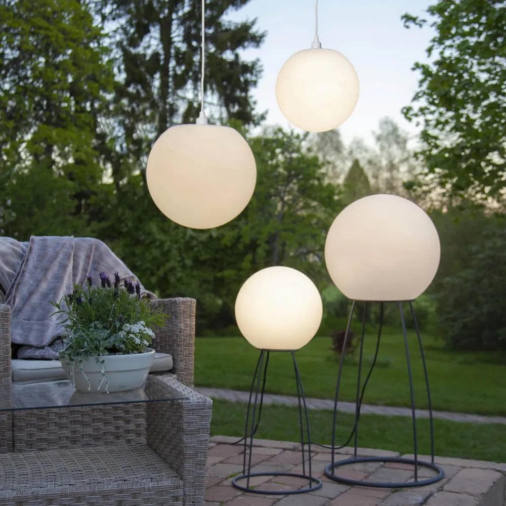 Dekorativt kabel med E27-fatning Ute E27-fatningen Ute er udstyret med et langt kabel. Et Schuko-stik er fastgjort til enden af kablet. På grund af længden er kablet ideelt til dekorative formål og som pendel til udendørs brug – Pærer medfølger ikke