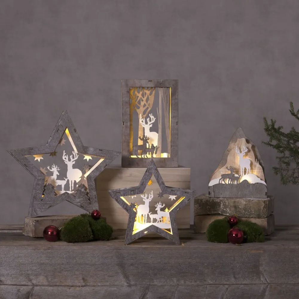 Fauna LED-dekorationsstjerne af træ, højde 24 cm