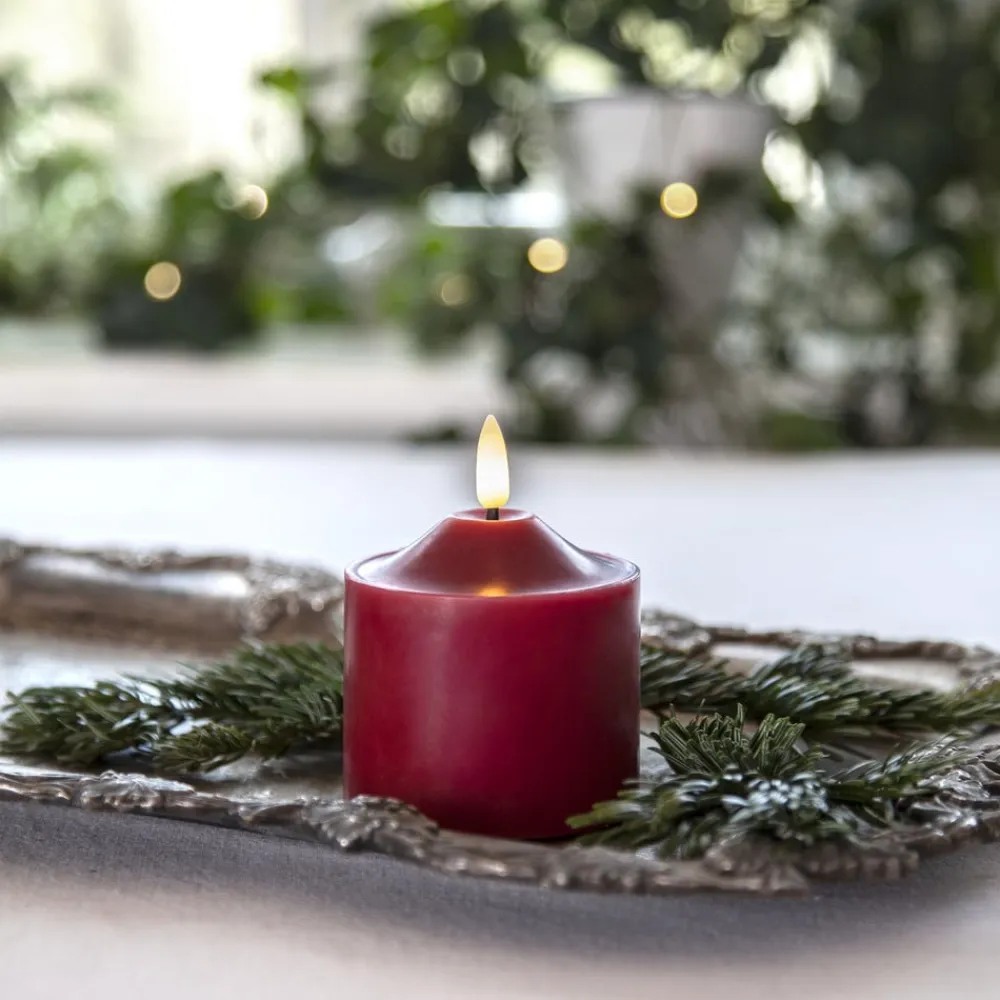 LED lysflamme, højde 9,5 cm rød ægte voks batteridrevet