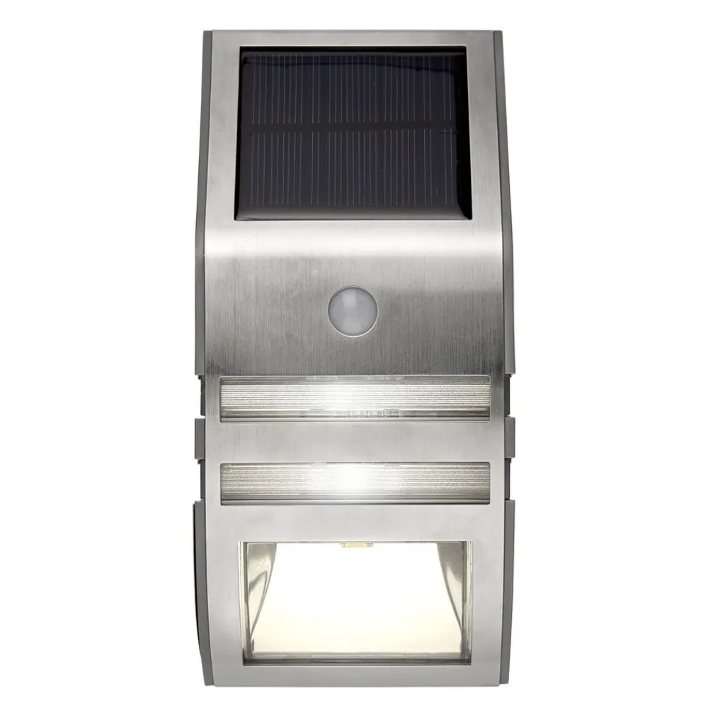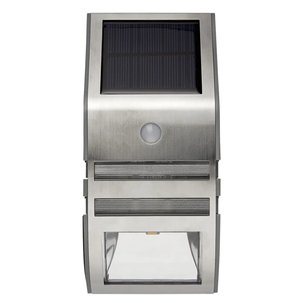LED-solcellevæglampe Wally i rustfrit stål med bevægelsessensor