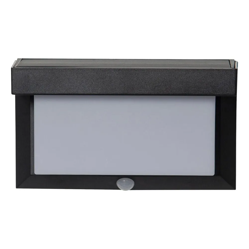 LED-solcellelampen Valla er sort og har en kantet, hvid diffusor, der spreder lyset uden at blænde. Over diffusoren er et integreret solpanel, der oplader de indbyggede batterier med solenergi og giver dem en lysvarighed på op til 6 timer i mørke. Takket være den trådløse montering kan Valla placeres fleksibelt i solområdet på husets facade eller i indgangen til huset og terrassen. Panelet kan også justeres, hvilket giver endnu mere fleksibilitet.