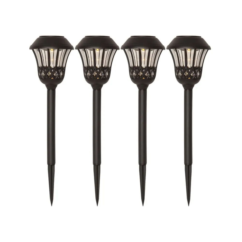 STAR TRADING Solcellelamper>Lace LED-lampe med jordspyd, sort, højde 31 cm, sæt med 4 stk