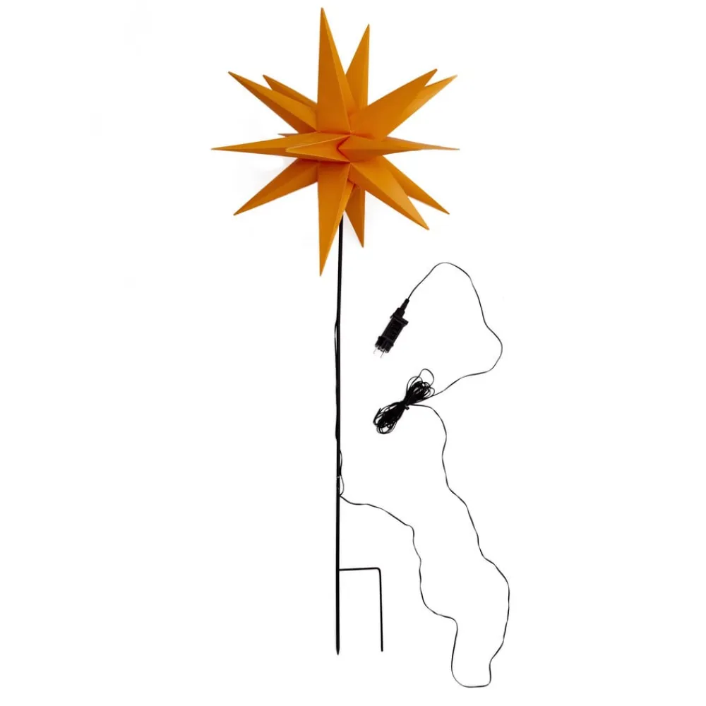 LED-stjerne, ude, med jordspyd, Ø 55 cm, gul