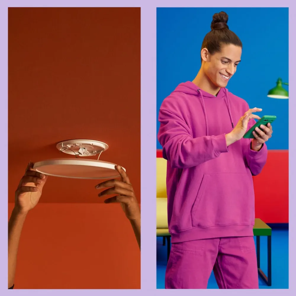 Smart SuperSlim LED-loftslampe med lav indbygningshøjde Som navnet antyder, er den smarte SuperSlim LED-loftslampe en ekstremt flad påbygningslampe, som er ideel til brug i rum med lav loftshøjde. Den er rund i formen og lukkes i bunden af en satineret skærm, så lyset ledes ind i rummet uden at blænde. Den indbyggede WiZ-belysningsteknologi, som kan styres med en smartphone, WiZ-vægkontakten eller WiZ-fjernbetjeningen (se tilbehør), kan bruges til at skabe livlige lysrytmer, der efterligner dagens naturlige forløb og dermed øger det personlige velvære.