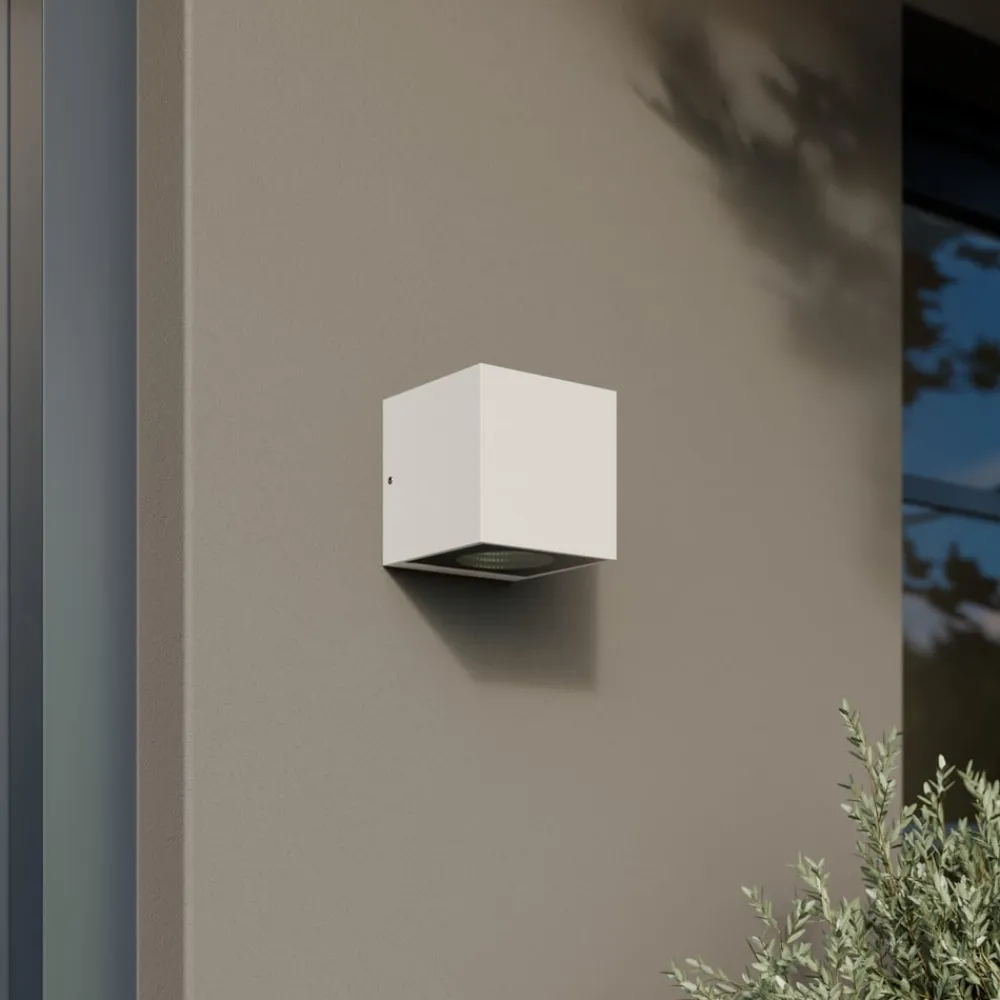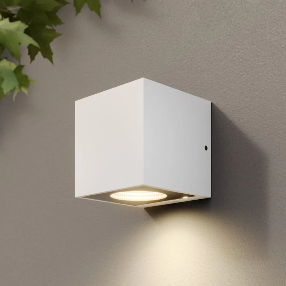 Terningformet LED udendørs væglampe Tassnim i hvid aluminium