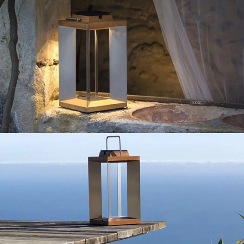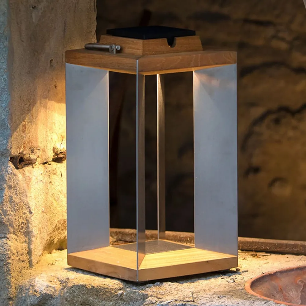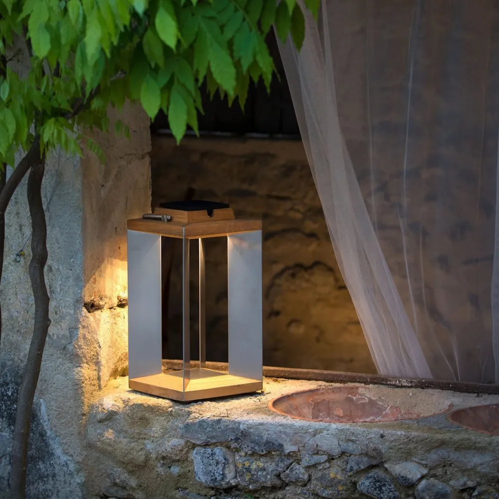 Teckinox LED-solcellelanterne, teak/stål, 45,5 cm^Les Jardins Hot