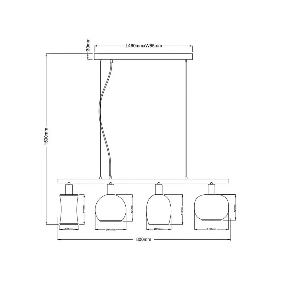 Telesto pendellampe med glasskærme, 4 lyskilder