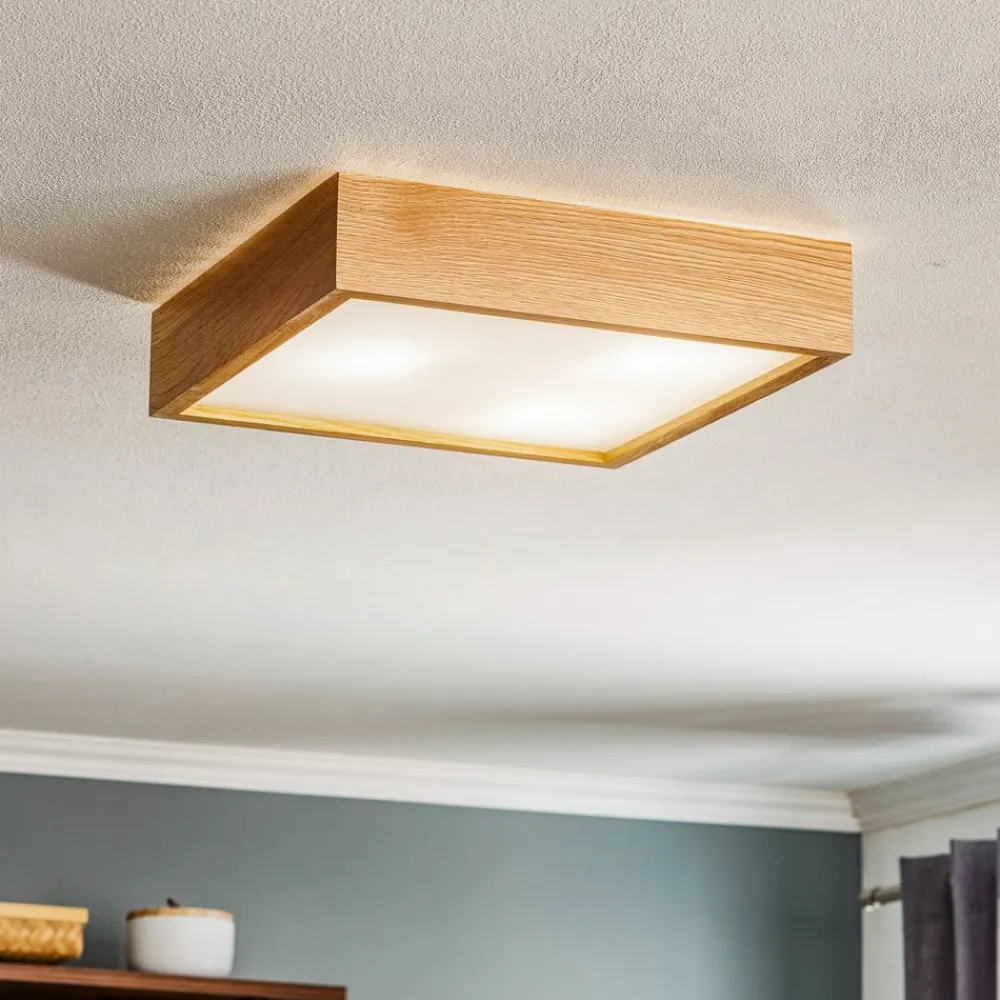 Loftlampen Quatro DR med træramme forener stilfuldt design med varmen fra naturlige materialer. Den elegante træramme giver ethvert rum en indbydende atmosfære og harmonerer perfekt med forskellige indretningsstilarter. Denne lampe er ikke kun et optisk højdepunkt, men tilbyder også en jævn og behagelig lysfordeling, der sikrer et behageligt miljø.
