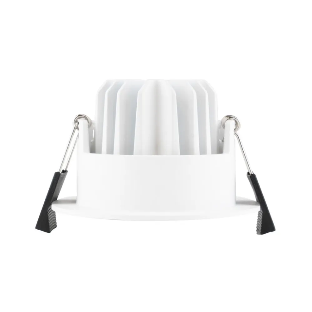 SLC OnePro indbygget LED-downlight med højt lumenoutput SLC OnePro indbygget downlight er den perfekte belysningsløsning til professionelle installationer. Downlighten er fremstillet af pulverlakeret aluminium og er udstyret med en højglansreflektor og en afdækning af transparent glas. IP44-beskyttelsesgraden gør, at den kan bruges både indendørs og udendørs, og med sit høje lumenoutput giver den en klar og kraftig belysning, samtidig med at den er praktisk talt lille. Den passer ind i forsænkede åbninger med en diameter på 6,8 til 7,5 cm og er særligt velegnet til renovering med eksisterende forsænkede åbninger samt til brug i nye installationer. Downlighten kan vippes 30° for at rette lyset, mens det dybt indbyggede LED-modul giver en blændfri, behagelig lysoplevelse og et lys, der er behageligt for øjnene. SLC OnePro-downlightet er velegnet til alle anvendelser, hvor der kræves meget lys, både i kommercielle installationer og i boliger. Den leveres med en dæmpbar, flimmerfri LED-driver og kan dæmpes med enhver konventionel LED-dæmper med bagkant. Tekniske egenskaber – særlig god farvegengivelse (CRI >90) – 40° udstrålingsvinkel – symmetrisk lysfordeling – egnet til gennemfortrådning – tilslutning via IDC-isolationsforskydningsstik – IP44-beskyttelsesgrad – kan også bruges udendørs – dæmpbar via bagkantfasedæmper