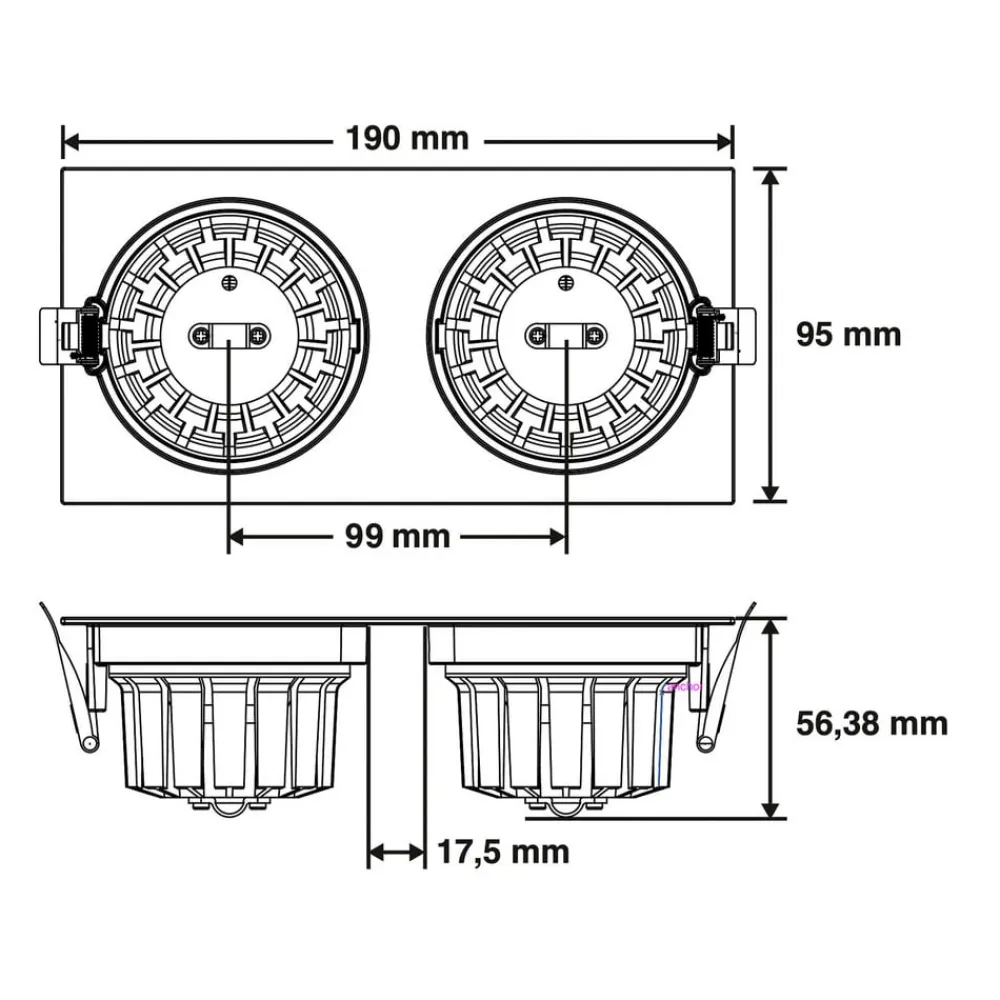 - Indbygningsåbning – 18,35 cm x 8,3 cm