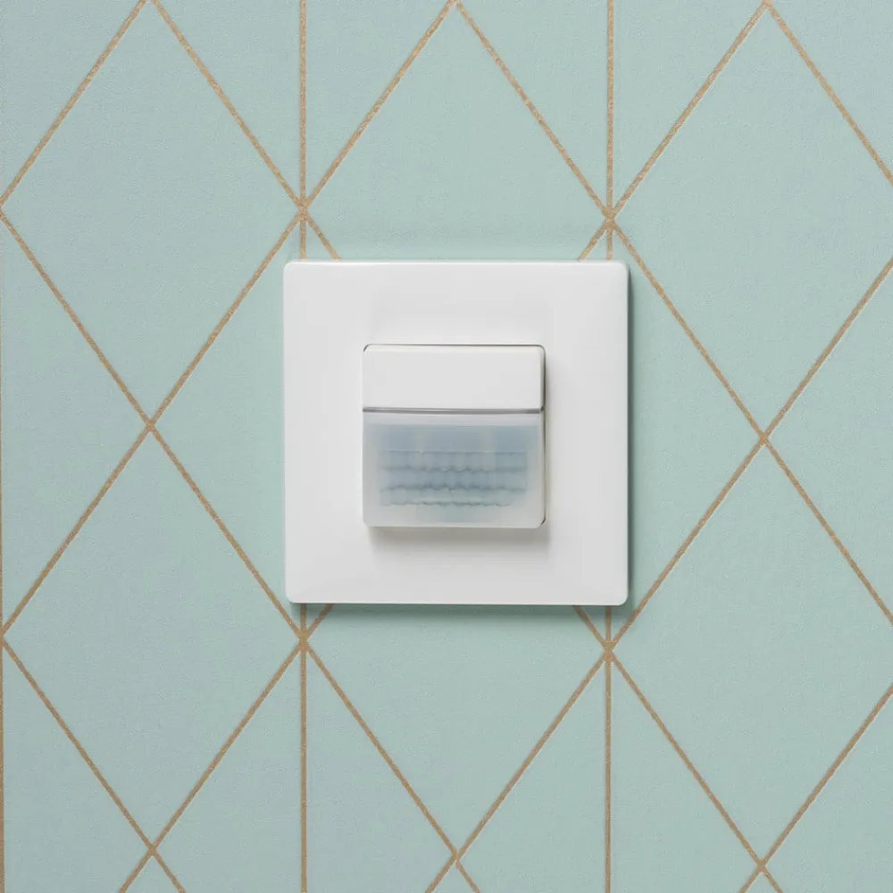 Til indbygning i væggen: PIR-bevægelsesdetektor theMura S180-100 UP WH med dæksel