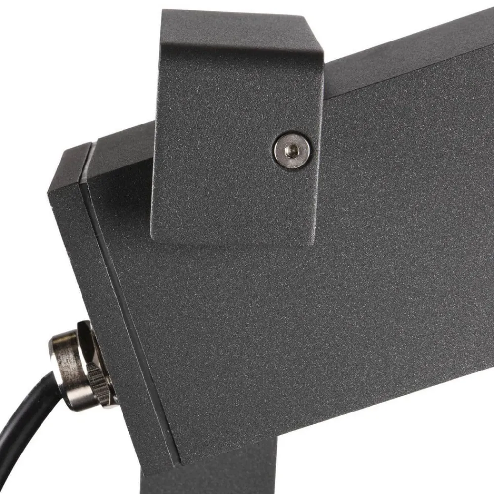 Variabel justering – Theo Bracket jordspydslygte Theo Bracket er en moderne jordspydslygte, der kan bruges i både private og kommercielle bygninger. Den er lavet af aluminium af høj kvalitet, og dens antracitfarvede udseende gør den meget diskret og diskret. Takket være den vinklede lampeskærms justerbarhed og det drejelige led kan lyset rettes efter behov, så det område, der skal belyses, er perfekt iscenesat. Theo Bracket leveres med et 150 cm langt kabel med Schuko-stik. IP65 beskytter armaturet mod alle vejrforhold.