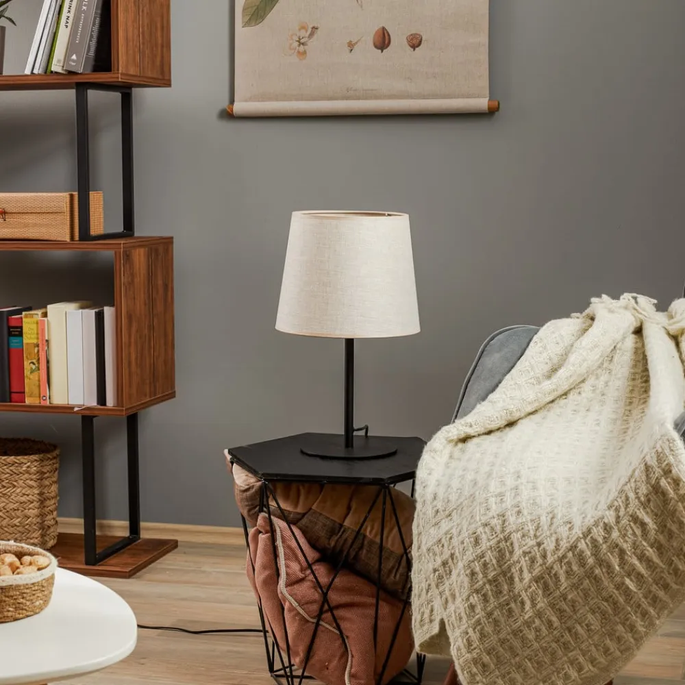 Bordlampen Chicago kombinerer materialer af høj kvalitet som metal, hør og plast til et stilfuldt belysningselement, der sætter præg på ethvert rum. Med sit elegante design og harmoniske farver i sort og natur passer den perfekt ind i stuen, soveværelset og spisestuen. Skærmen i hør sikrer en behagelig lysfordeling og skaber en indbydende atmosfære.