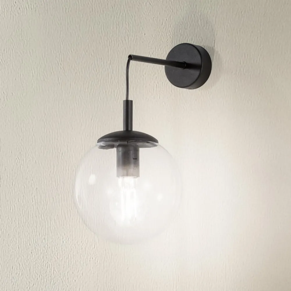 Esme væglampe: en dekorativ lyskilde til ekstra belysning Esme væglampen kombinerer stilfulde materialer som glas og stål i et tiltalende design. Denne lampe er ikke kun et visuelt HighLight, men også funktionelt alsidig. Uanset om det er i stuen, spisestuen, gangen eller soveværelset – Esme-væglampen passer harmonisk ind i forskellige rumkoncepter og skaber en behagelig lysstemning. Væglampen er fremstillet i Europa og imponerer med sin høje kvalitet og sit tidløse design, som passer til både moderne og klassiske indretningsstile. Kombinationen af gennemsigtigt glas og sort stål giver Esme et elegant touch, der forbedrer ethvert rum – Eksternt dæmpbar