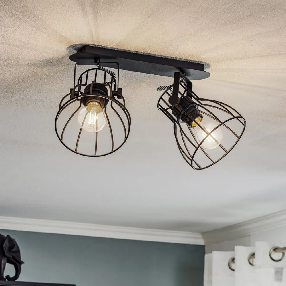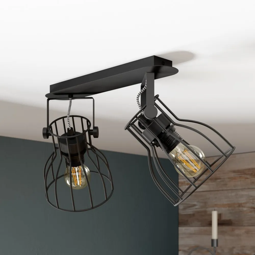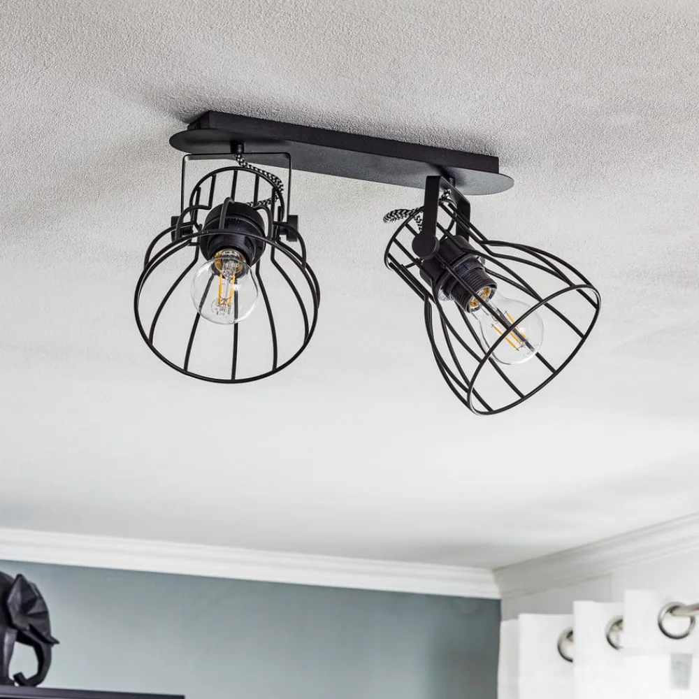 Loftlampen Alano i elegant sort kombinerer moderne design med funktionel belysning. Den er fremstillet af højkvalitetsmetal og passer perfekt ind i forskellige boligområder som stuen, entreen, køkkenet og spisestuen. Konstruktionen med 2 lyskilder giver mulighed for en alsidig lysdesign, der skaber både en hyggelig og inspirerende atmosfære.