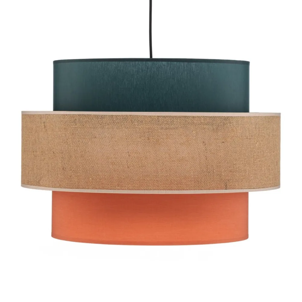 TK Lighting Pendellamper>Hængelampe Trio, juteskærm, petrol/naturbrun/orange Ø 50cm