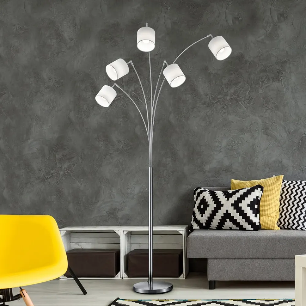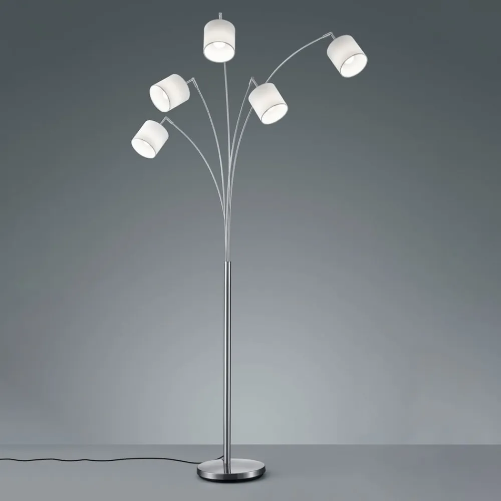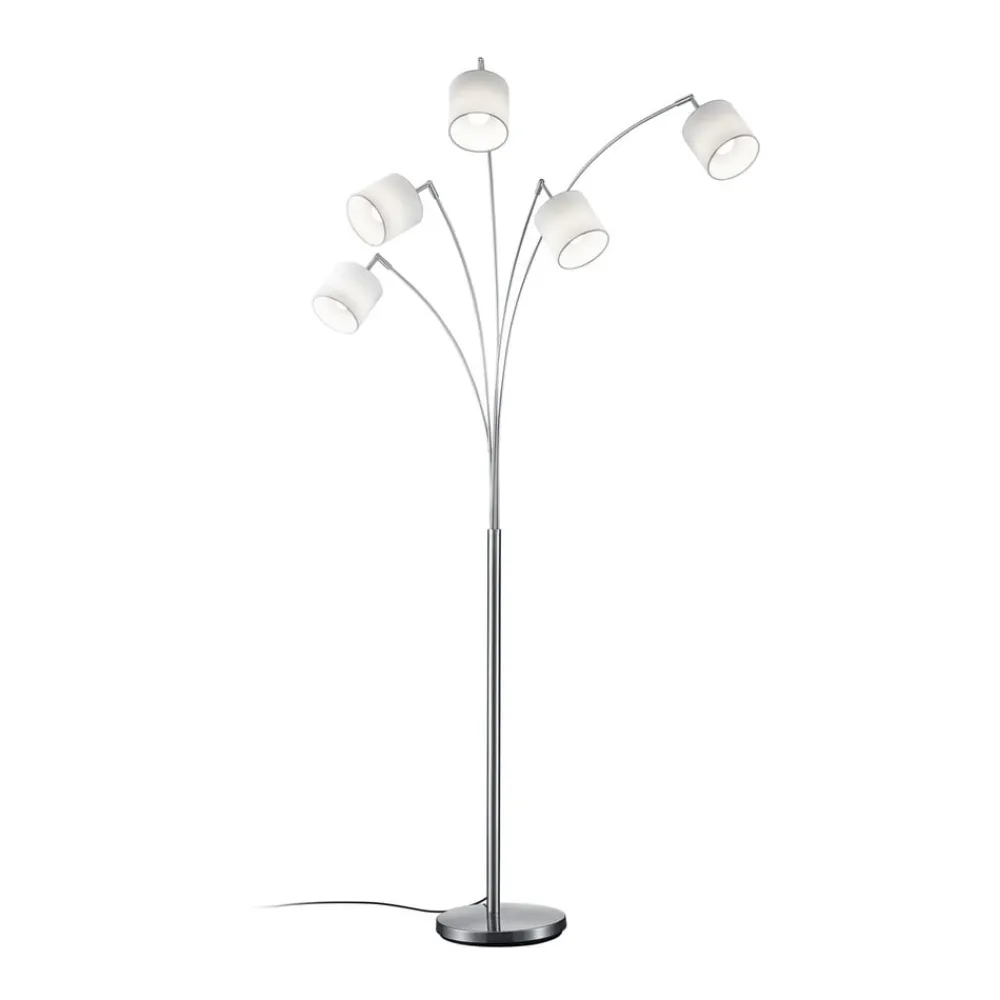 Tommy gulvlampe, nikkel/hvid, højde 200 cm, 5-lys, stof