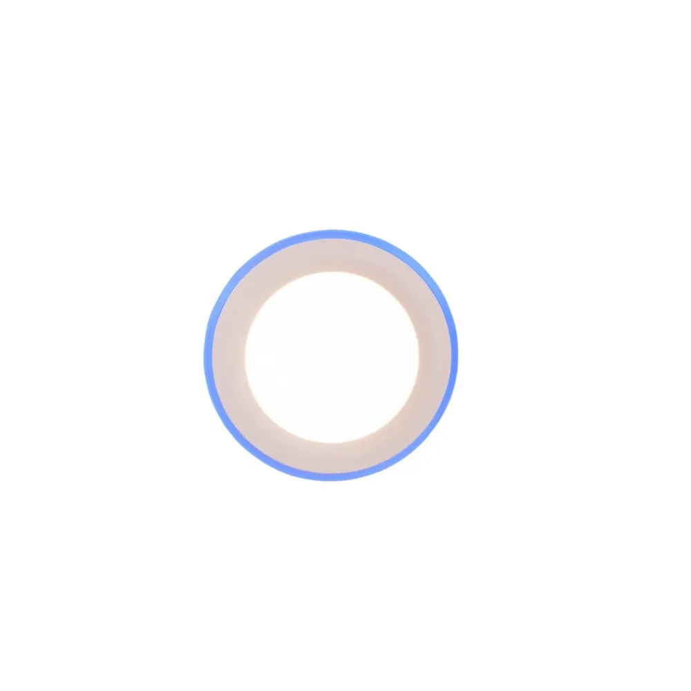 Rund Argus LED indbygningsdownlight, lysfarve og lysstyrke kan styres med fjernbetjening Argus LED indbygningsloftarmatur i plast har en varmhvid hovedlyskilde og en sideintegreret ring med ekstra LED’er, der kan tændes separat og lyse i forskellige farverige nuancer. Tænding, valg af lysfarve og dæmpning sker med den medfølgende fjernbetjening (inkl. 1 x CR2025-batteri). Den tilbyder også fire forudkonfigurerede lysscener.