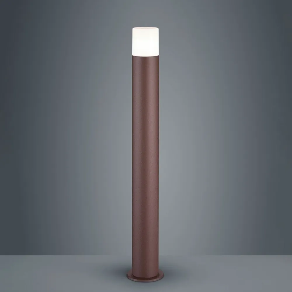 Den cylinderformede gadelampe Hoosic er fremstillet af trykstøbt aluminium og forsynet med en rustbrun lakering. Den passer ind i stort set alle udformninger af udendørs områder. Den lille hvide plastskærm udstråler lyset hele vejen rundt. E27-fatningen kan ud over traditionelle glødepærer også udstyres med moderne LED-lyskilder (medfølger ikke), så du sikrer at dit udendørs område belyses på en moderne og energieffektiv måde.